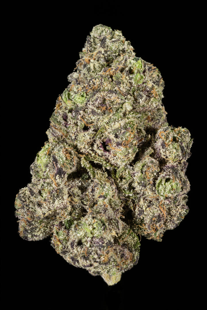 Skunky gas with burnt-rubber bite and a fruit-laced finish—bold flavor and a heavy, mind-melting indica punch.